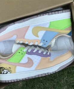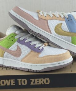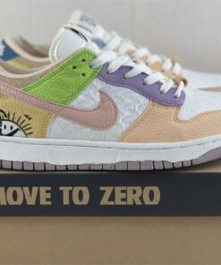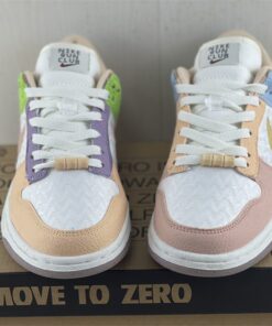 Aside from the Nike Dunk Low Nike “Sun Club” (Arctic Orange), the Nike Dunk Low “Sun Club” is revealed in another color scheme of “Sail/Sanded Gold-Light Madder Root.” Perfect for the warm months, the low-top dons a white woven base composed of recycled material while its leather overlays flaunt a vibrant color block finish. Finally, the focal point is directed at the “Nike Sun Club” branding on the tongues, palm trees behind the tongue tags, and a sunny “Have A Nike Day”-style logo on the heels. Finally, bamboo-styled lace dubraes, a white midsole, and a speckled grind rubber outsole top off the profile.