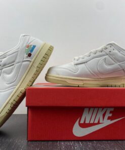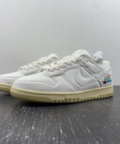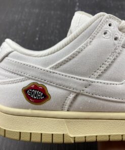This Nike Dunk Low has been designed for the ladies as the popular low top features a full Sail construction throughout the upper with tonal detailing hitting the tongues, laces, inner liner, and the various Nike branding throughout. The signature detail is the colorful “The Future is Equal” phrase printed on the insoles and lateral ankles. Down below we have a cream rubber midsole and tan outsole to finish off this Nike Dunk Low.