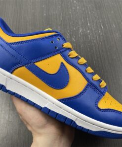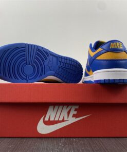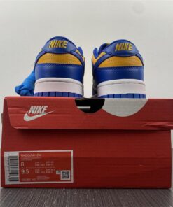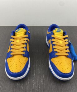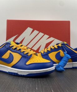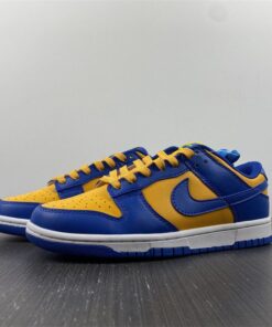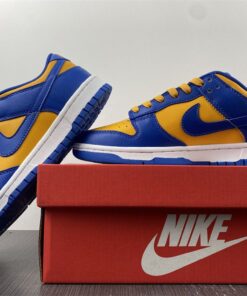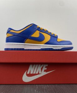 Dressed in a Blue Jay, University Gold, and White color scheme. This offering of the Nike Dunk Low comes constructed in a full leather build with a traditional two-tone makeup featuring a University Gold base with Royal Blue overlays. Both colors are also used on the branded areas while sitting atop a White midsole and Blue rubber outsole. The shoe will also come with extra set of laces.