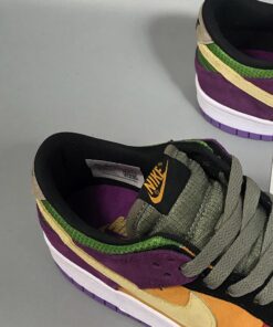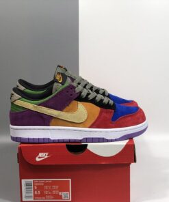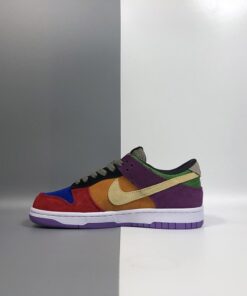 This Nike Dunk Low stands out from other releases due to its vibrant colors used throughout while constructed with a premium suede. Each section also displays a different shade with the exception of the eyestays and liner (Black) and overlay by the heel and rubber outsole (Purple). The addition of Black is a new feature not seen on the original release along with Zoom cushioning. Finishing the look is a White midsole.