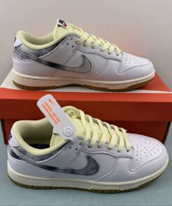 Similar to past releases, the silhouette is crafted from a leather base made from tumbled leather. Its vintage nylon tongues and inner linings add to its distressed theme, followed by denim textile Swooshes and ankle collars. Nike branding appears on the tongue tabs and heels, resting atop a sail-colored midsole and gum outsole.
