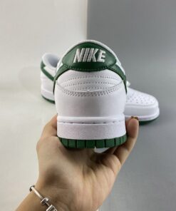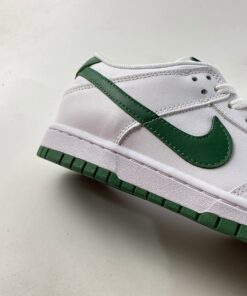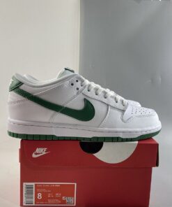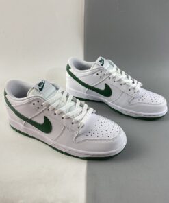 This pair of Nike Dunk Low features a simple white leather upper and comes with matching tongues, laces, mesh liners as well as midsole. Emerald green accents are seen on the Swooshes on the side panels, the Nike branding on the tongue and insole, including the heel overlay and rubber outsole. The easy-to-match pair sticks to the traditional silhouette but offers a pop of colour with the understated green to highlight the shoe’s details.