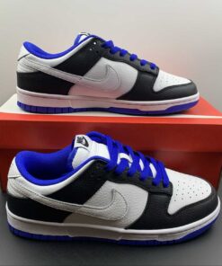 The Nike Dunk Low receives yet another colorway this season as the model is draped in classic tones of white, black and blue. Flaunting a premium tumbled leather construction, the low-top dons a white base that is contrasted by black overlays. The highlight blue tone adorns the laces, inner lining, and rubber outsole, while a white midsole sandwiched in between rounds out the design nicely.