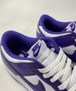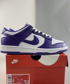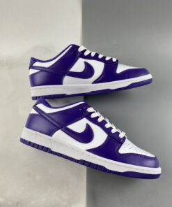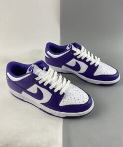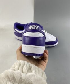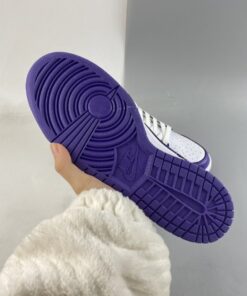 This offering of the Nike Dunk Low keeps things simple and traditional featuring a White leather base with perforations at the toe box. Purple overlays, lining, Swooshes, tongue branding, heel tabs and insoles with White continuing on the tongues, laces, “NIKE” branding in the rear and midsoles. A Purple rubber outsole completes the design.