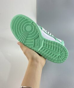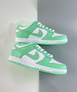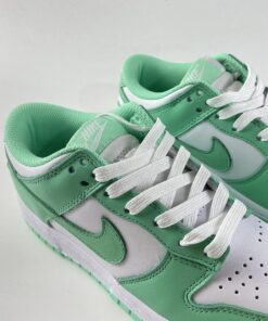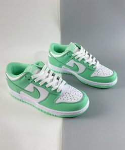 Dressed in a White and Green Glow color scheme. This Nike Dunk Low features a White leather base with Green Glow overlays, Swooshes, tongue labels, heels, and inner lining. A White midsole atop a Green rubber outsole completes the design.