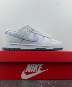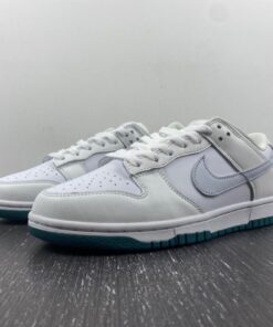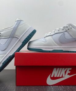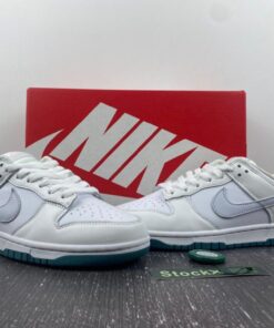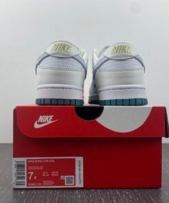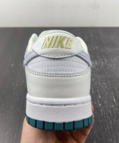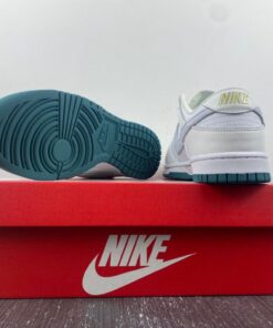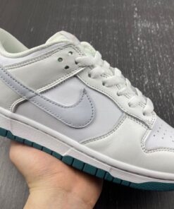 This Nike Dunk Low features a traditional leather upper with mesh on the tongue. It features a Swooshes of light grey all delivered in smooth leather. Nylon tongues, liners, and laces all arrive in pure white with midsoles to match, before a deep green rubber outsole rounds out the design underfoot.