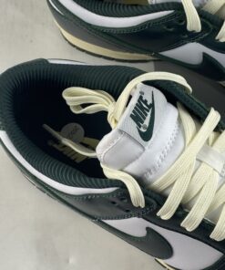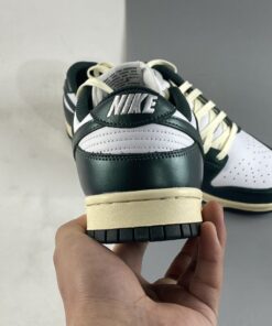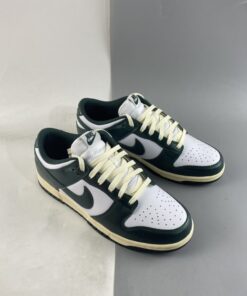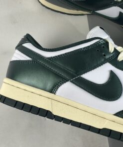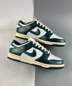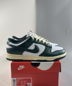 This aged-offering of the Nike Dunk Low keeps things simple and traditional featuring a White leather base with matching nylon tongues, laces, and heel branding. Green leather overlays, Swooshes, lining, outsole, and tongue branding while the vintage aesthetic continues with Off-White laces, Cream Nike branding on the insoles atop a Yellowed midsole.
