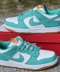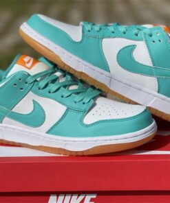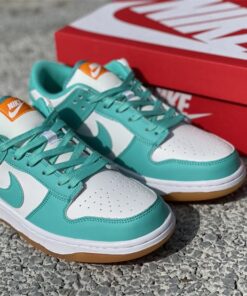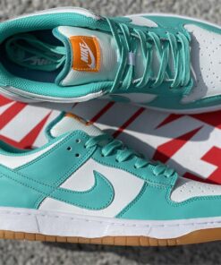 A plethora of colorways are scheduled to arrive on the Nike Dunk Low this spring as it’s now revealed in a vibrant two-tone makeover. Flaunting a crisp white leather base, the highlight consists of Turquoise Green adorning the overlays, laces, and inner lining. Additionally, orange accents are prominent on the tongue tags, while a white midsole and a gum translucent outsole rounds out the design.