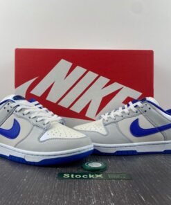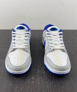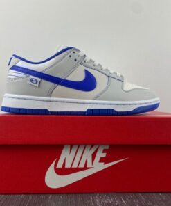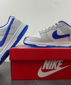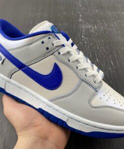 The Nike Dunk Low “Worldwide” iteration is showcased in a clean “White Game Royal” colorway. Notably a contrast to the previous Nike Dunk Low Black Game Royal edition, this cleaner variation consists of a white leather upper with complementing grey overlays and contrasting Royal Blue accents throughout. Finally, metallic Swoosh branding on the tongues, “Just Do It” tags on the medial, peace and globe motifs on the insoles, followed by a white midsole and blue semi-translucent outsole rounds out the design nicely.
