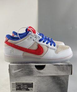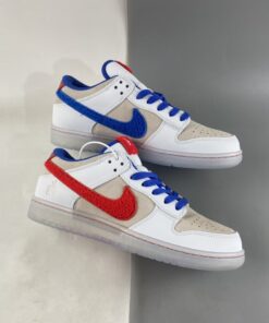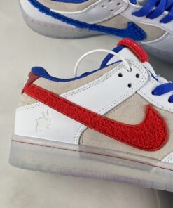 This rendition of the Dunk Low pays homage to the Air Force 1 with a grey suede foundation, white leather overlays, and crimson and royal Swooshes on the side panels. The Swoosh and tongue tags have been enhanced with white tufts that resemble fleece to better reflect the furry characteristics of the rabbit, the fourth animal to complete the Chinese zodiac race.