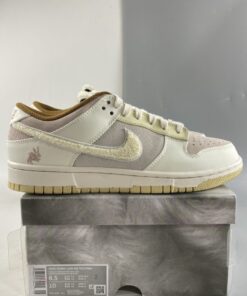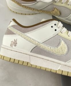 This Dunk Low comes constructed in a mix of materials that includes a fur on the Swooshes and tongues meant to mimic the fur we see on rabbits. Taking a closer look you will find symbols on the tongue tags that read “rabbit” in Chinese as well as rabbit motifs on the lateral ankle and insoles. Metallic Gold lace dubraes reading “2023” and a two-tone rubber sole round out the look.