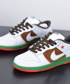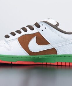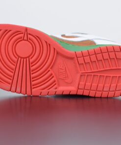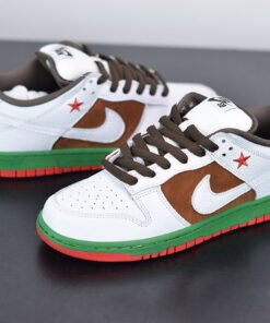 These Dunks were inspired by the California state flag, hence the nickname Cali. They shoes have a brown suede side panel, representing the bear, while the green midsole resembles the grass upon which the bear is standing. The red outsole is for the red stripe at the bottom of the flag.