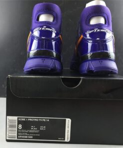 This Nike Zoom Kobe 1 Protro comes dressed in the Suns’ team colors. It features a Purple patent leather upper paired with an Orange Nike Swoosh. Other details includes the “1” embroidered on the heel as a nod to Booker’s jersey number, as well as the Kobe logo and “Suns” text on the tongues.