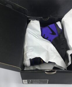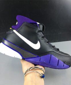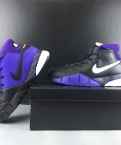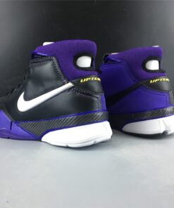 This Nike Kobe 1 Protro features a Black and Purple upper with White appearing on the Swoosh logo and outsole. Completing the Lakers theme are Yellow hints on the Swoosh above the toe as well as on the heels.