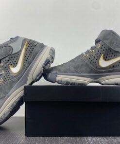 The Nike Zoom Kobe ‘Prelude’ retro sequence is the lone pair with a velcro strap. This Nike Zoom Kobe II Prelude locks your foot into marble with gold touches on the branding elements. chosen because this is the shoe that Kobe was wearing when Kobe truly began carving his name in B-Ball history. The gilding includes a ‘4’ that represents how many times the Black Mamba hit half a hundred an astounding four times in a row back during the ZK2’s first run. A graphic representing that treatment sits on the insole.