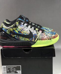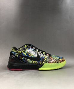 This offering of the Nike Kobe 4 Protro is inspired by Kobe Bryant’s book that features an array of colored streaks on the upper. Other details includes Black tumbled leather tongues, a matte Black heel cup atop a colorful rubber sole.