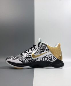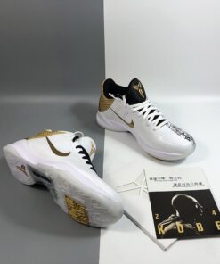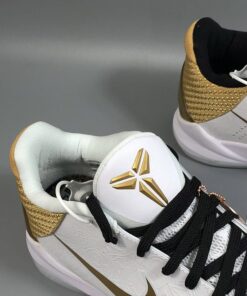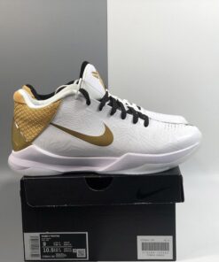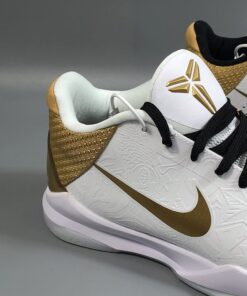 This Nike Kobe 5 Protro features split design on its lateral and medial sides with the “Big Stage Home” detailing displayed on the medial, and the laser etching from the “Parade” pair on the lateral. Contrasting Gold accents and branding completes the design.