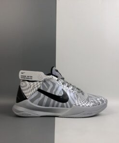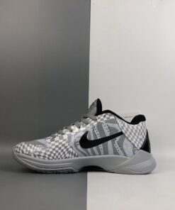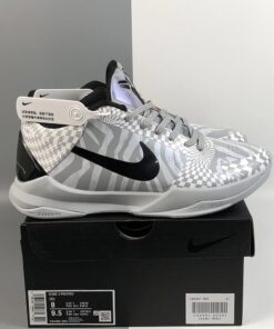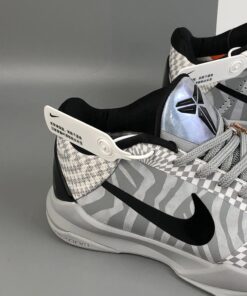 The other features a Grey and White base covered in various patterns in a mix of checkerboard and tiger stripes on the panels completed with bold Black Swooshes and details throughout.