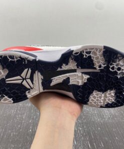 Seen in two colourways, the first is the home colourway, which uses white on the upper with glossy scales throughout to fit into the Black Mamba theme and blue and red hues accent the sneaker throughout. The away colourway features navy on the upper with red and white accenting. Cushlon is used in the midsoles that encapsulate a large Zoom Turbo unit in the forefoot, and a marbled print is featured in the respective outsoles to finish off the sneakers.