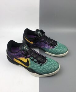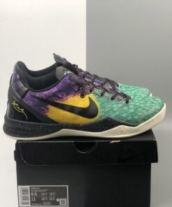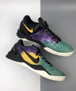 Dressed in a Fiberglass, Court Purple, Black, and Laser Purple color scheme. The “Easter” edition of the Nike Kobe 8 was arguably the better release of the pack that was inspired by Easter eggs and the occasional seasonal candy. The shoe sports a gradient Purple-to-Gold-to-Teal Engineered Mesh upper that includes a Black Nike Swoosh and midsole that’s completed with a White outsole.