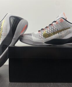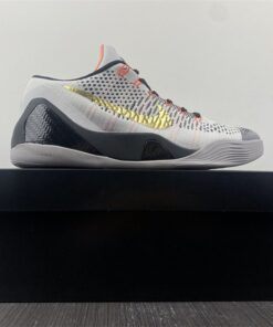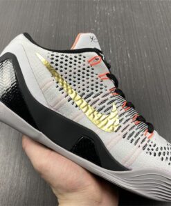 This Nike Kobe 9 Elite is a part of the “Gold” Series. They come in a white, metallic gold, and black colorway. Featuring a white-based upper with platinum, black and mango accents finished off by a metallic gold Swoosh on the sides