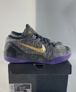 The Kobe 9 Elite Low iD ‘Mamba Moment’ was created to celebrate Kobe Bryant become the NBA’s third-highest scorer of all time. The purple and green Flyknit upper was a pre-set design option, with a gold Swoosh, tongue and heel branding accenting the look. Bryant’s initials and record-setting point total emerge on the tongue.