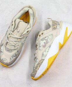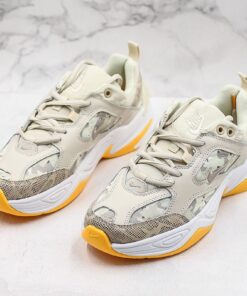 Dressed in a Light Orewood Brown, White, Laser Orange, and Moon Particle color scheme. This offering is highlighted with both desert camo underlay and snakeskin print on the toe cap and heel. Laser Orange accents on the insole and rubber outsole gives this release a nice summer touch.