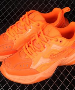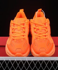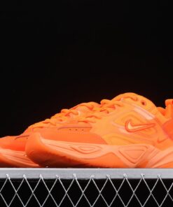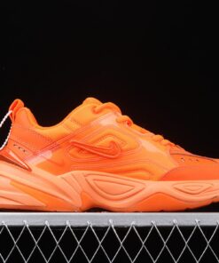 It features a full Orange-based upper with a translucent plastic piece on the midfoot overlay. There is also an Orange chrome detail added to its heel clip atop a Beige-like midsole atop a translucent outsole.