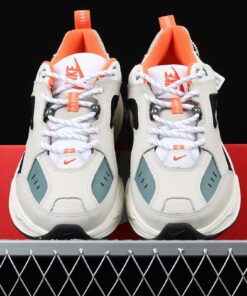 Dressed in a Light Bone, Metallic Silver, and Turf Orange color scheme. The model itself uses inspiration from the Nike Monarch. This release features a Light Bone upper with Olive and Black underlays, highlighted with Orange accents.