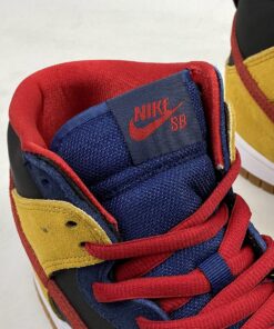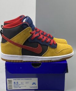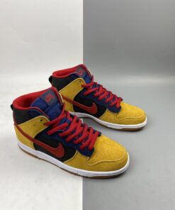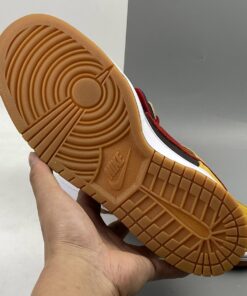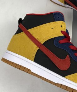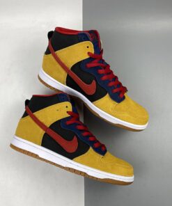 Buttery maple suede dominates the upper on this pair, while a dark obsidian canvas material fills in the side panels, eyestay, upper ankle and heel. Varsity red gets into the mix on the inner liner, Swoosh, laces and tongue branding. Working below is a white midsole and gum rubber outsole.