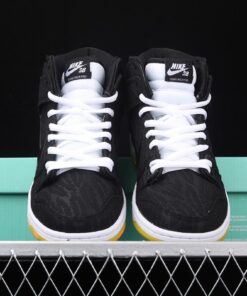 Dressed in a Black, White and Laser Orange color scheme. This Nike SB Dunk High features a Black striped textile upper to match the mammals fur, along with White detailing throughout. An interesting Laser Orange marbled outsole and a Skunk illustration hits the outsole to complete the look.