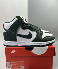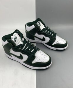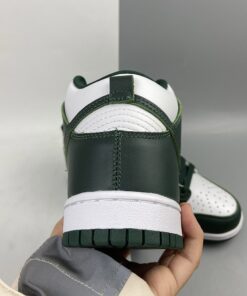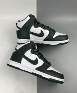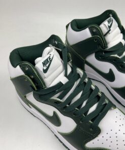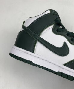Unlike the original, this version of the Nike Dunk High will come dressed in a White and Pro Green makeup. The shoe features a White leather base with a darker shade of Green on the overlays as well as on the rubber outsole.