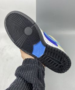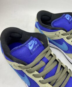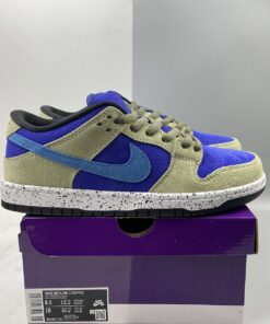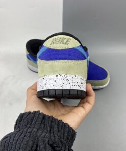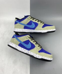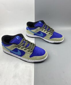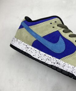 Dressed in a Celadon, Coast, Concord, and Black color scheme. This Nike SB Dunk Low features a full suede constructed upper with a Purple base, Khaki overlays highlighted with Turquoise Swooshes. A speckled midsole like the “Terra ACG” release atop a Black rubber outsole completes the design.