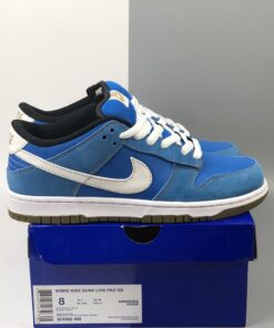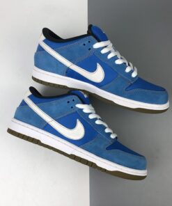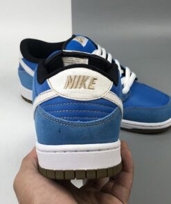This special edition Nike SB Dunk Low features an Argon Blue upper with nylon on the toe box and quarter panels along with suede overlays. White Swoosh logos, laces, and midsole atop a Gum rubber sole and Chun Li printed insoles completes the design.
