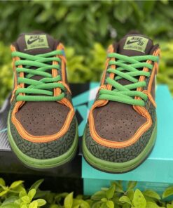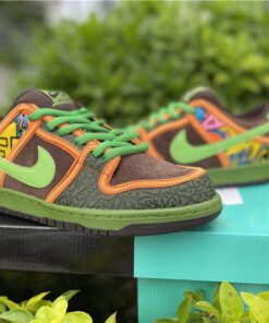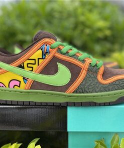 After making its mark in 2005, the Nike SB Dunk Low “De La Soul” is set to make some noise come May 2015. The shoe is equipped with an Earthy Brown base, Vibrant Green and Orange accents, Cement-like toe, and finished with a graphic heel panel.