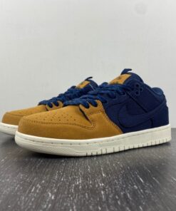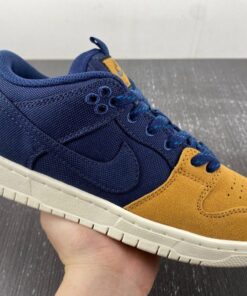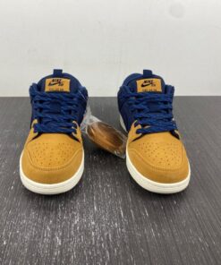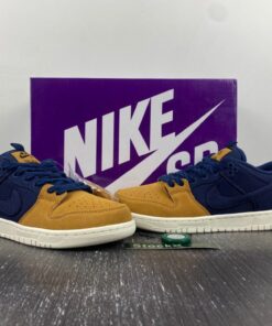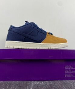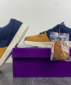 As the end of January inches closer, the modified version of Peter Moore’s made-for-basketball silhouette has emerged in an “Ochre” and “Midnight Navy” color combination, and sude and canvas upper. At quick glance, the choice in materials are seemingly a simple break from the Nike Dunk‘s popular use of leather, but closer inspection of the sock-liners suggest otherwise. Traditional “Nike SB” branding is replaced with an illustration of a road traffic barrier having an all-purpose putty poured over its openings. The suede and canvas, then, plays into the “do-it-yourself” inspiration behind the shoe. Elsewhere, pull tabs on the top of the tongue and stash pockets on the tongues underside deliver a utilitarian modification to the Nike SB Dunk Low. The sole units underfoot opt for a tonal off white look that allow for the upper to revel in the spotlight.