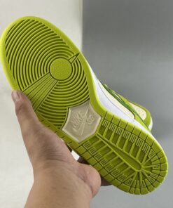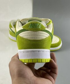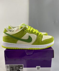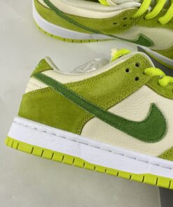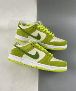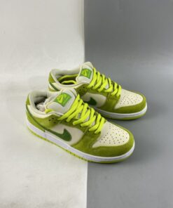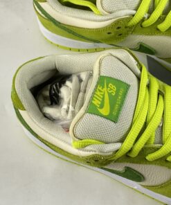 So far no official images have been shared, but we’ve been given a first look at the forthcoming Nike SB Dunk Low “Green Apple” which features an off-white white tumbled leather base and contrasting apple green suede overlays, laces, and outsole. Darker green dresses the profile Swoosh insignias. To further push its “Fruity Pack” aesthetics, green apple characters appear on the inner tongue tags. Although not confirmed, the “Green Apple” theme might be a nod to apple strains of marijuana, such as Sour Apple and Apple Jack.
