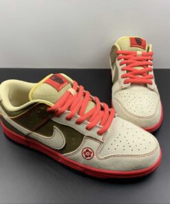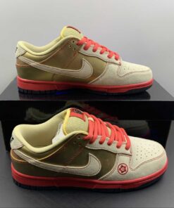 The Money Cat Lows are one of the flashier SBs out there, with gold leather uppers and a gold suede toe symbolizing wealth. These kicks were designed after the Maneki Neko, also referred to as the Money Cat or Lucky Cat in English, which is a Japanese cat sculpture, often made of porcelain and placed in restaurants and stores to bring good fortune. The insole has a picture of this cat. As far as the rest of the shoe, the red outlines and signature flower design accent the shoe greatly.