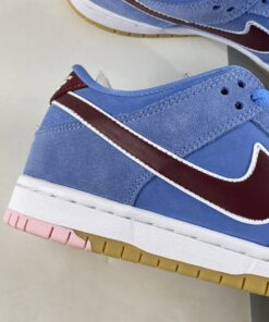The Nike SB Dunk Low Phillies is said to be part of a “Bubble Gum” Pack that will also include the Nike SB Dunk High. This Phillies-inspired Nike SB Dunk Low comes dressed in a University Blue suede upper throughout joined by the Team Red Swooshes on the side panels outfitted by White trimming. More Team Red lands on the heel tabs with White Nike branding and Team Red branding on the tongues, White rubber midsoles, and Gum rubber outsoles with a touch of pink much like we saw on the Air Jordan 1 High OG WMNS Atmosphere. The look of the sneaker is meant to be reminiscent of the ’80s uniforms of the Philadelphia Phillies comes with University Blue laces along with extra White and Team Red laces.