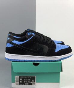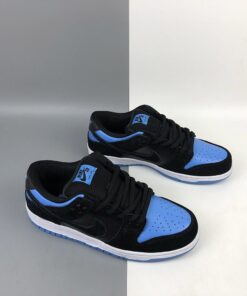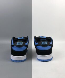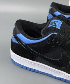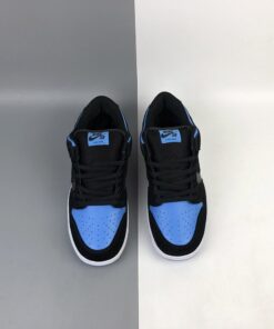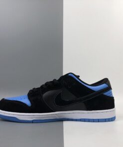 Black and University Blue share the leather upper of this Nike SB Dunk Low, but without the soft blue hue breaking up the look on the quarters. Instead, there’s a black Swoosh on a black leather panel, only contrasted by a blue stitch outline. A traditional white midsole and blue outsole wraps things up below.