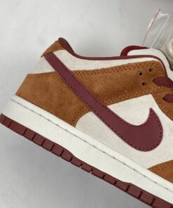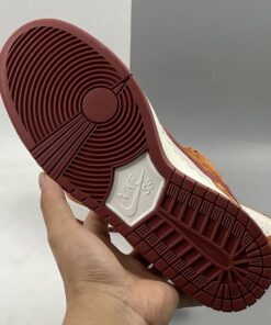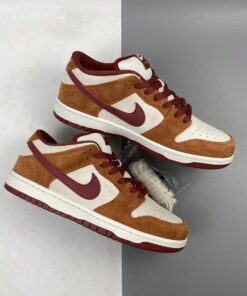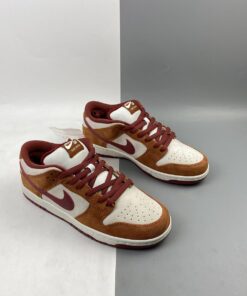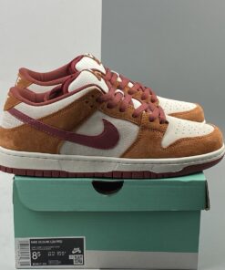 Crafted from a slew of ultra premium materials including smooth suede, luxe leather, and neat nubuck, the Dunk Low Pro Dark Russet is painted in one of the most unique colour schemes the model has ever seen. A clean off-white base contrasts again deep orange panels, while rich red hues hit the laces, sockliner, and the Swoosh logos that shoots across the lateral and medial side panels. “Nike” branding hits the tongue and heel, and to round it all off, classic perforations arrive on the toe box, completing the low cut look that we all know and love.
