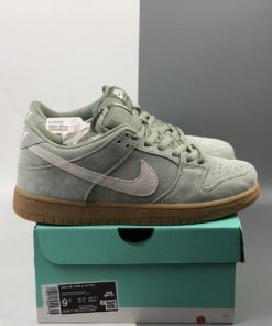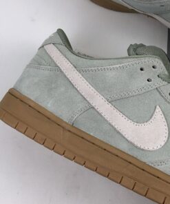 Dressed in a Horizon Green, Eraser Light Brown, and Light Ivory color scheme. This Nike SB Dunk Low features a Light Green suede upper with tonal textile tongues, liners, and laces. Light Ivory covers the Swoosh logos, tongue label, heel embroidery, and insoles atop a Gum rubber outsole.