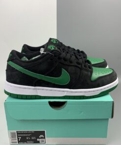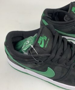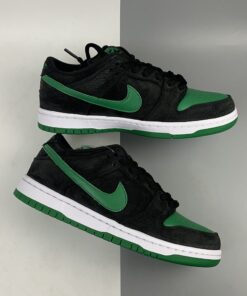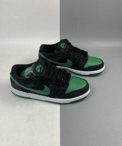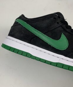 This iteration of the Nike SB Dunk Low features a Black suede upper with Pine Green leather hitting the toe area, Swoosh logos, branded tongue and heel as well as the outsole. A clean White midsole finishes off the design.
