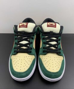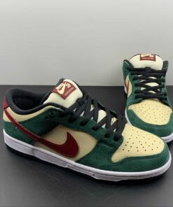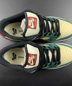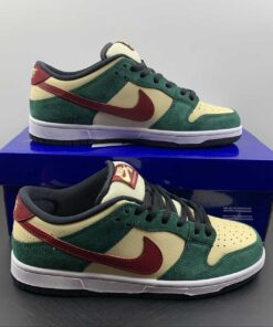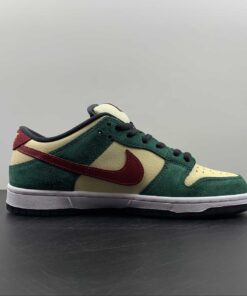 We now get a better look at the Vegas Gold/Team Red-Team Green colorway of the Nike SB Dunk Low Pro. The construction is done with Vegas Gold suede paneling on the toe and mid while Team Green suede serves as the toe and heel. The Team Red adds a bit of pop via a leather swoosh and suede heel tab. With puffy tongue in tact these should be at select retailers in March.