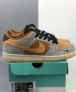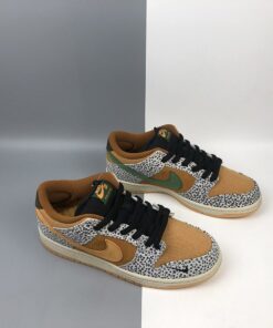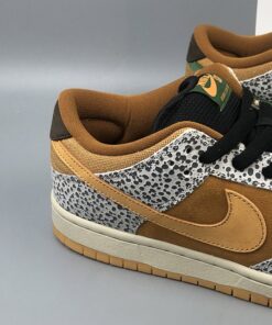 This offering of the skate shoe features materials true to the original, with canvas toe boxes, alternate colored Swoosh logos and suede side panels. Black appears on the tongues, mini Swooshes and laces highlighted with safari print overlays atop a Gum rubber outsole.