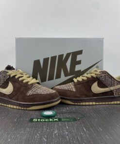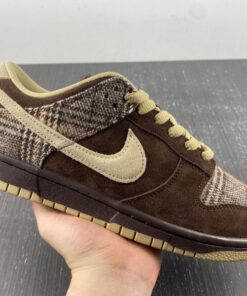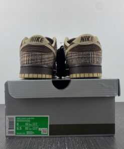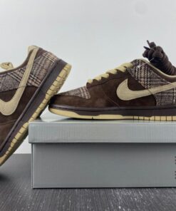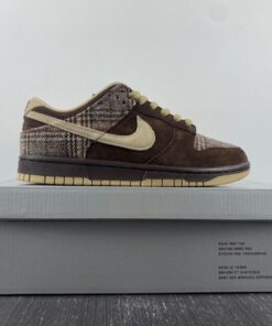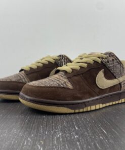 Dressed in a Baroque Brown and Mushroom color scheme, this Nike SB Dunk Low features a Tweed design on the toe box and heel, with the uppers fully constructed with Brown suede. Unlike the High pair, this Low release came with a Cream Nike Swoosh and matching rubber outsole.