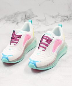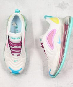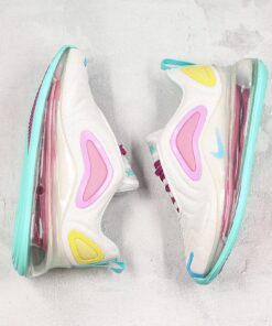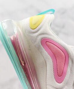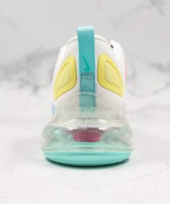 This offering features a White mesh upper highlighted with pastel Pinks and Yellow on the plastic overlays. Other details includes Purple laces, Teal pull tabs and branding on the tongue with Light Blue on the Swoosh logo and plastic overlay on the toe. A clear full-length Air Max sole unit atop a Teal and Purple sole completes the design.