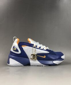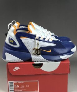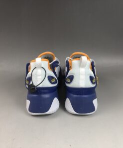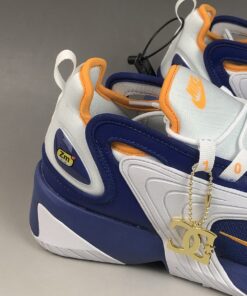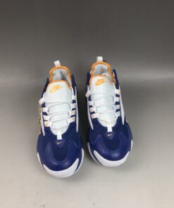 Looking closer, this pair comes constructed with leather and mesh across the upper while White lands on the tongue, eyestays, panels, heel and outsole. We also have Deep Royal Blue across the base and on the leather toe overlay while Orange Peel hits the branding and liner to complete the look.