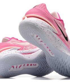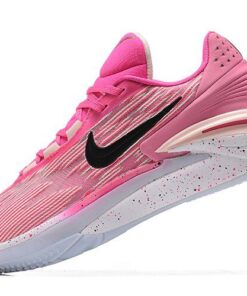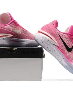 This Colorway consists of a primarily Punk upper with white hints along the upper as well, a black Nike swoosh on the lateral side and a white Nike swoosh on the medial side, it also has a white midsole with Pink splattering, and a white outsole. It also comes with a Hang Tag on the laces saying “When Life Kicks You, Let It Kick You Forward.” The Nike GT Cut 2 cushioning is made up of Nike React foam, Air Zoom Strobel, and extra Nike Air Zoom.