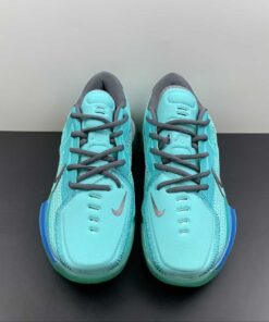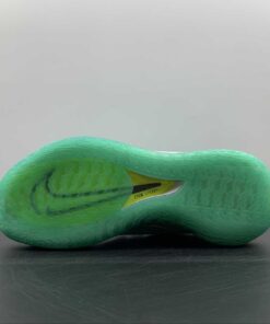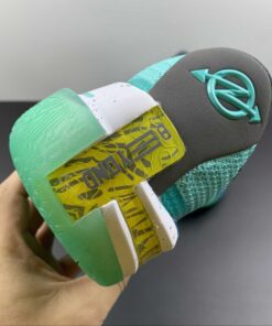 The sneaker is seen in a mix of Flyknit and mesh, using a teal upper and tongue throughout the sneaker. Grey accents the sneaker, seen on the Swoosh, heeltab, and tongue liner with a TPU outrigger seen on the lateral side for containment. The cushioning setup uses a combo of a Zoom strobel setup with a drop-in React foam midsole, and a teal translucent outsole to finish off the sneaker.
